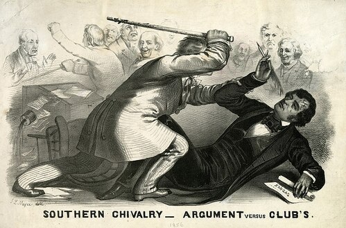 As our own United States Senate Archives tells the story (senate.gov), On May 22, 1856, the "world's greatest deliberative body" became a combat zone. In one of the most dramatic and deeply ominous moments in the Senate's entire history, a member of the House of Representatives entered the Senate Chamber and savagely beat a senator into unconsciousness.